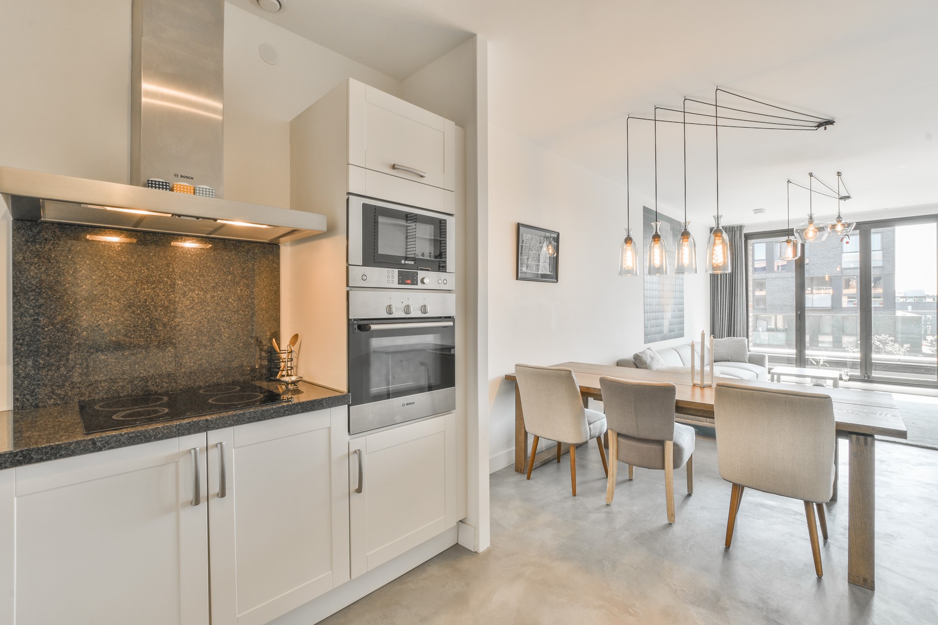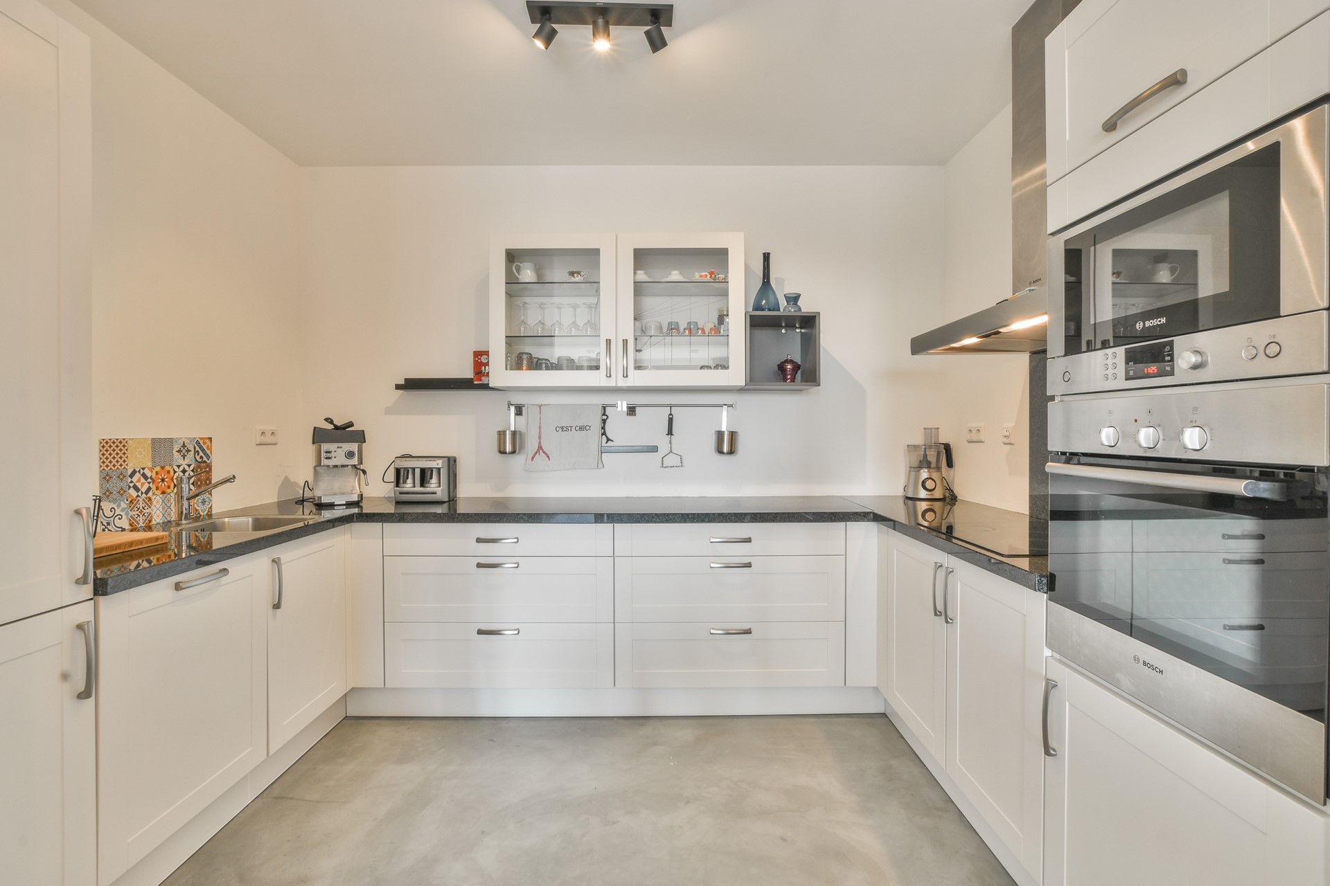 De woning kenmerkt zich door een prettige indeling, veel lichtinval en een hoogwaardige afwerking. De ruime woonkamer staat in open verbinding met de moderne keuken, welke is voorzien van diverse inbouwapparatuur, waaronder een inductiekookplaat, koelkast/vriezercombinatie, vaatwasser, afzuigkap, magnetron en oven.